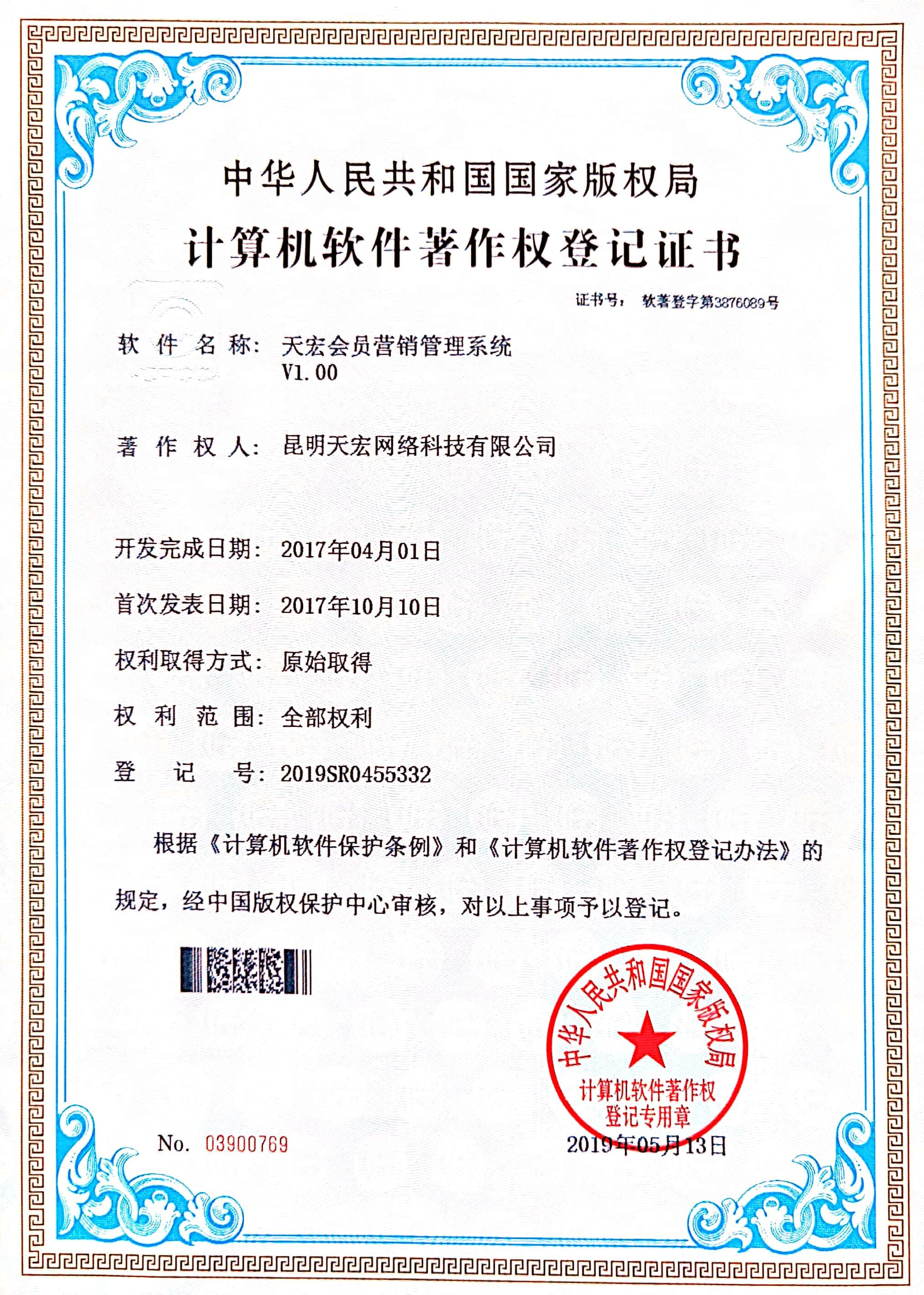 天宏網絡通過不斷的研發創新,現擁有50多項計算機軟著證書,包括多商家點餐系統、門店收銀管理系統、通用OA協同辦公管理系統、智慧商圈運營管理平臺、天宏健康智慧+系統、同城O2O管理系統等。